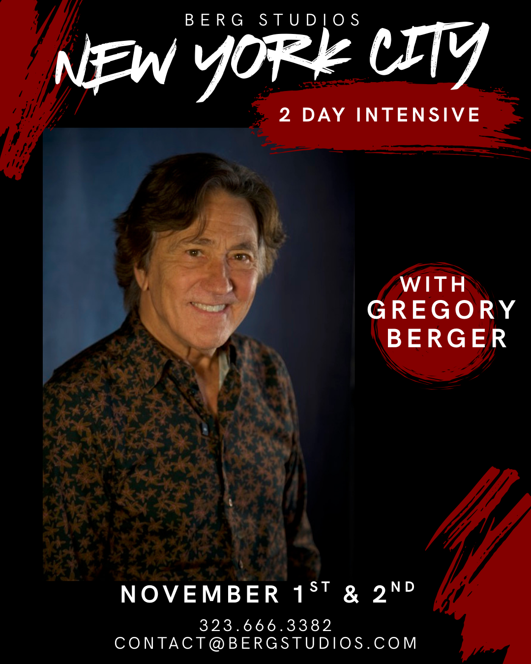 Award-winning teacher Gregory Berger (Berg) founded Berg Studios in Los Angeles in 1998, where he serves as the Master Acting Teacher. His clients have received Academy Awards, Emmy awards/nominations, and Tony awards. He is a graduate and former faculty member of the Yale School of Drama, where he taught On-Camera Acting Technique.