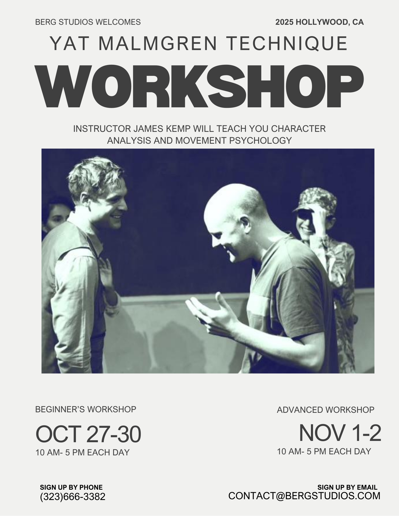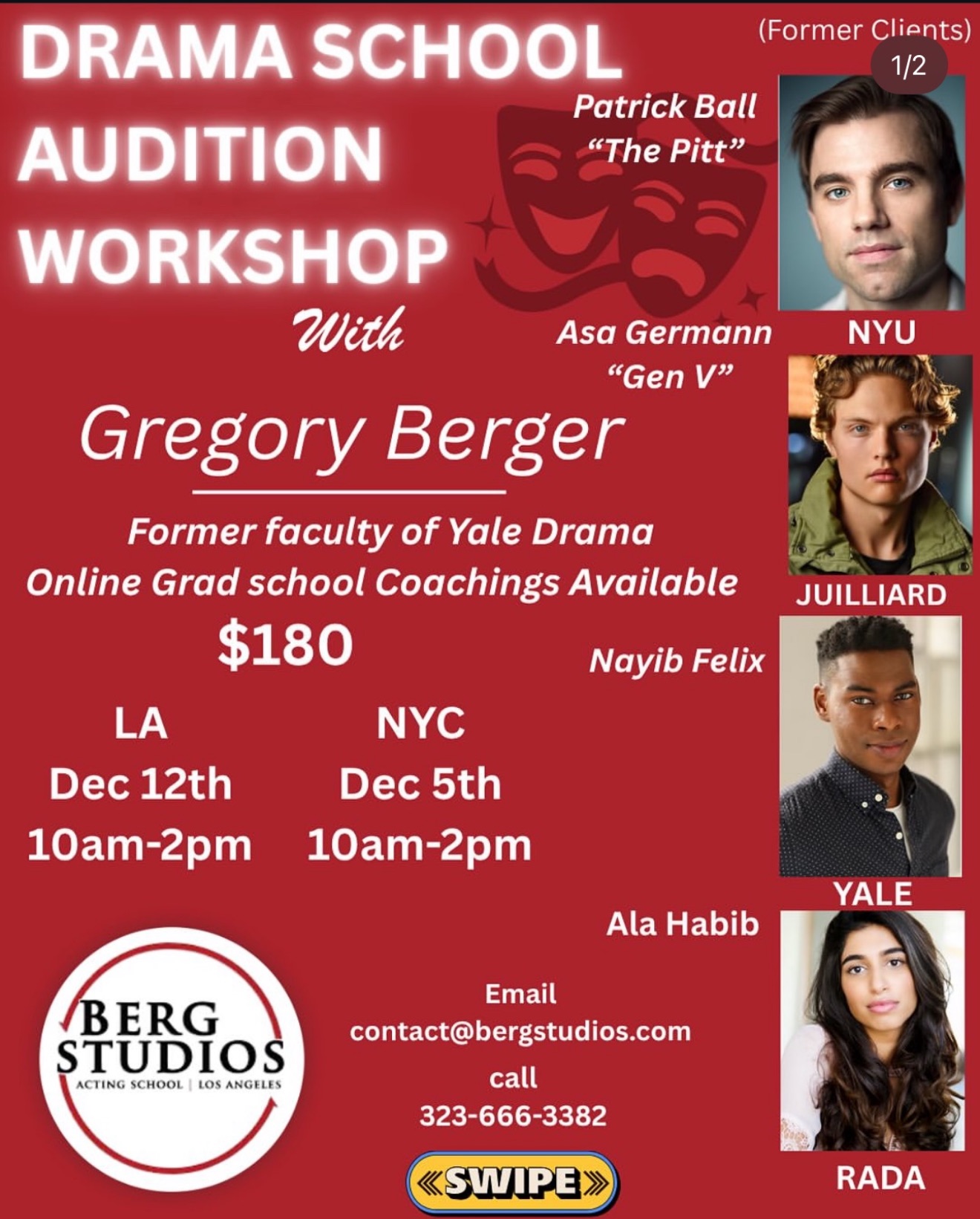 Berg Studios has also been voted Best Acting Class, Best Classical Class, Best Monologue Coach, and Private Coach by Backstage Magazine. He teaches bi-coastally and leads various international workshops.