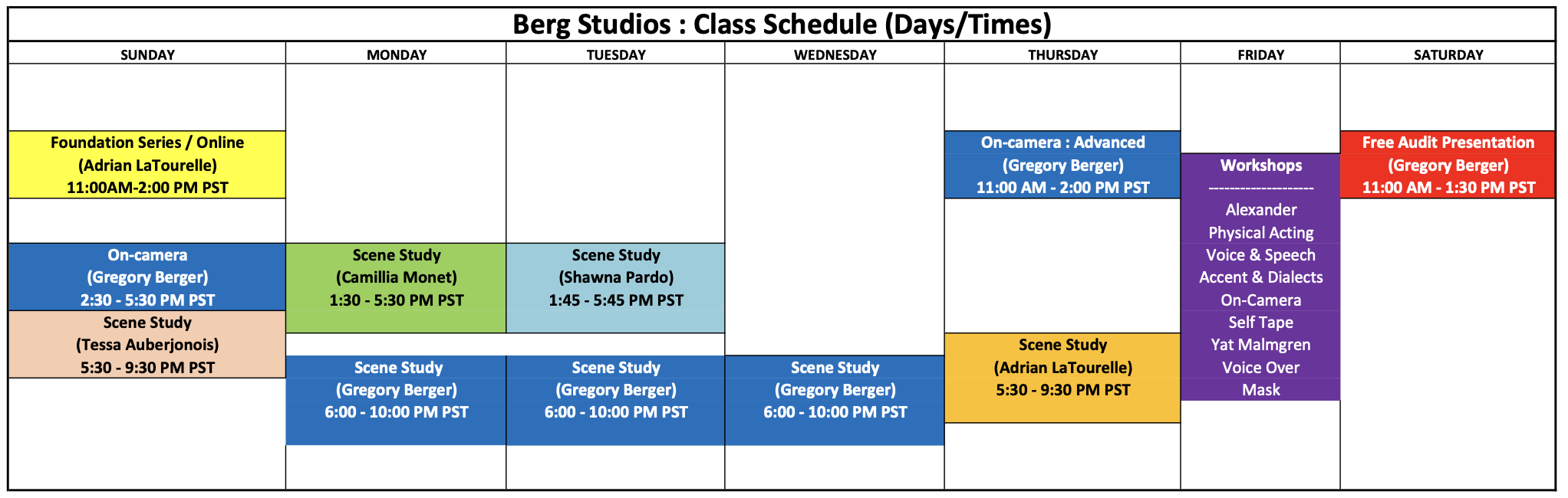 The Foundation Series is a series of four classes that we call the DNA of Berg Studios. Our technique, script analysis and creative task, language and imagery, and on-camera audition technique are all explored in great detail. This program is online and is a prerequisite to advance in our studio. This is a must for any actor looking for a place to start and for veteran actors in need of a refresher!